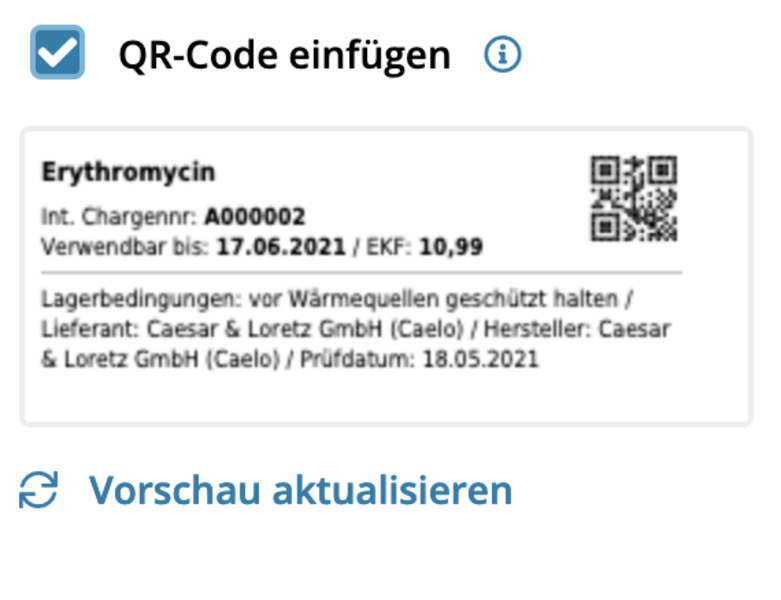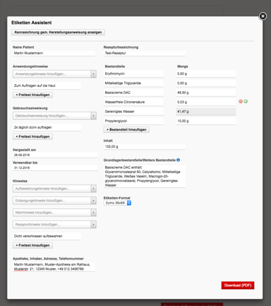 Der Etiketten-Assistent in der Rezeptur wurde um eine Vorschau-Funktion ergänzt, damit der Nutzer sich vorgenommene Änderungen schnell und übersichtlich anzeigen lassen kann. Daneben gibt es nun die Möglichkeit, die Schriftgröße der erzeugten Etiketten frei festzulegen.