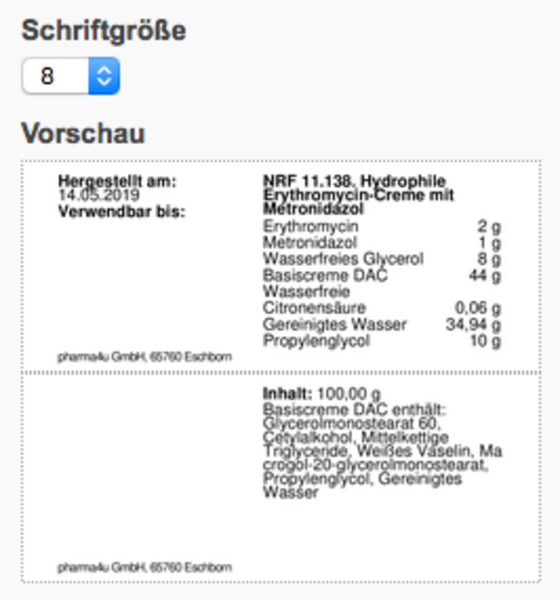 Änderung der Schriftgröße und Vorschau-Funktion im Etiketten-Assistent Rezeptur