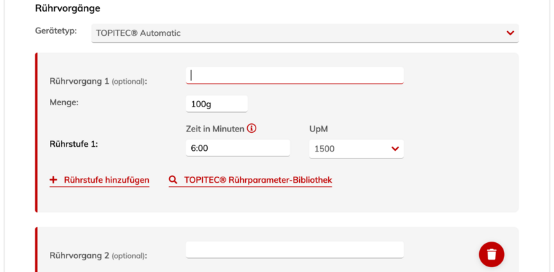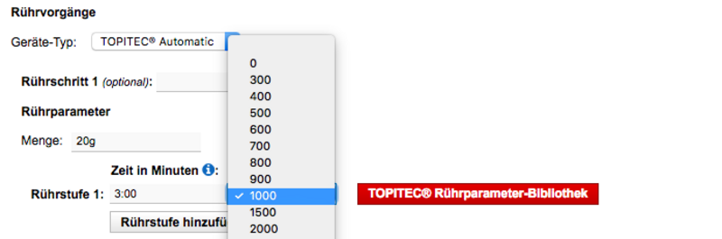 Verbesserung der Rührparametereingabe für TOPITEC®-Geräte