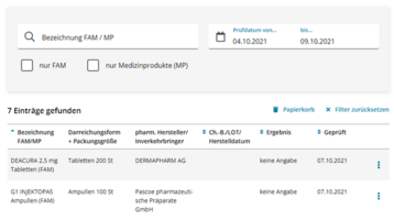 Neue Liste: Fertigarzneimittel und Medizinprodukte