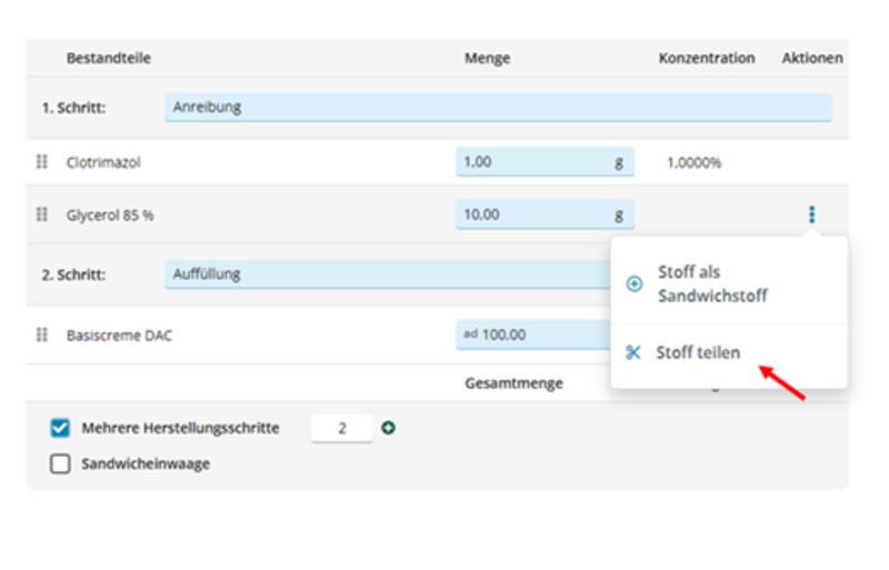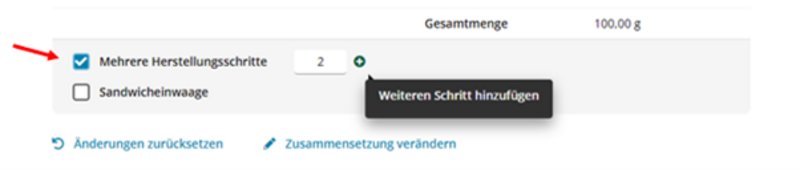 Unterteilung Ihrer Rezeptur in mehrere Herstellungsschritte