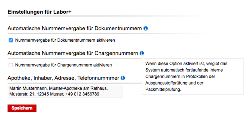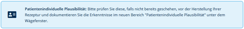 Neben der galenischen und stabilitätsbezogenen Plausibilität gibt es im Laborprogramm nun eine separate Dokumentationsmöglichkeit für patientenindividuelle Angaben.