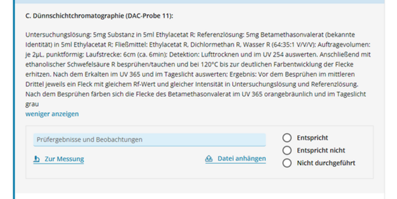 Ab sofort können eigene Dokumente bei bestimmten Prüfmethoden als Dateien angehängt werden.