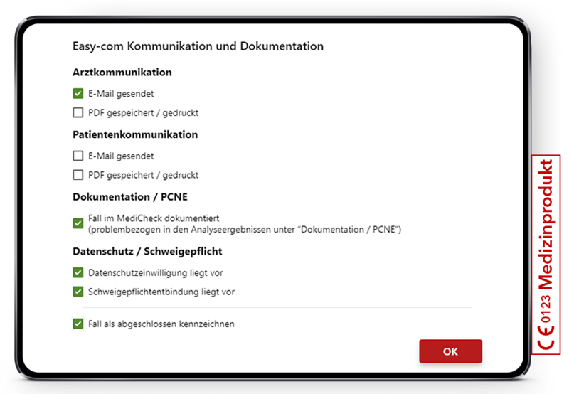 - Ärztliche Rückmeldung ist direkt im MediCheck markiert und nachzulesen