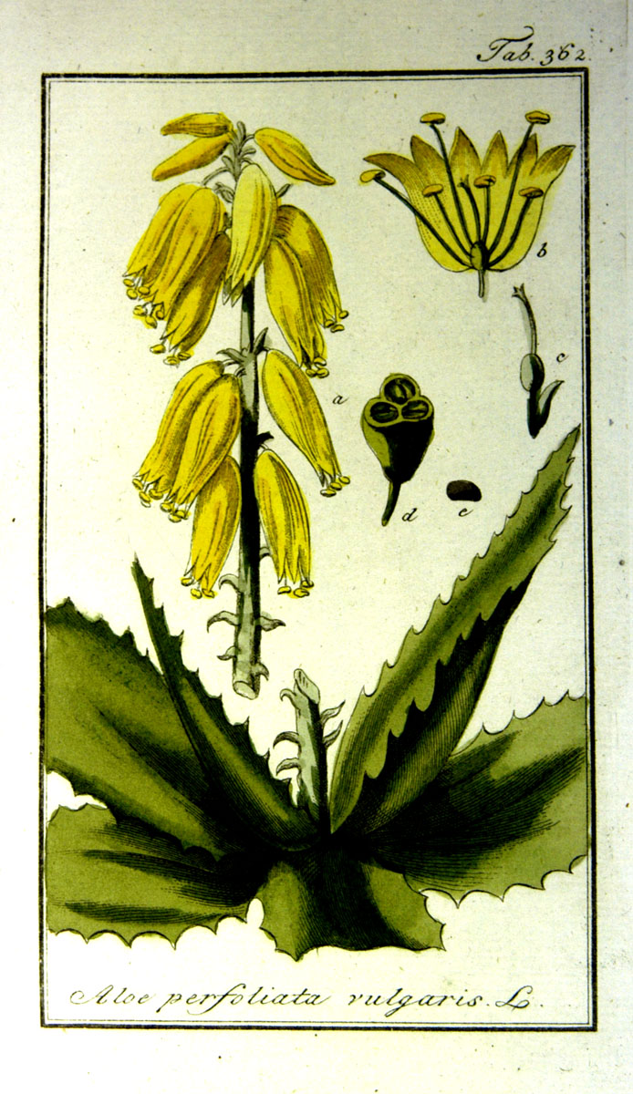 (1) Im März oder April abgeschnittene Blätter werden mit der Schnittfläche nach unten aufgeschichtet am Rande einer mit Ziegen- oder Pferdehaut ausgelegten Grube → auslaufender Saft wird gesammelt → langsames eindicken durch verdunsten an der Sonne → kristalline Aloinabscheidung → lederfarbene Hepatica-Ware → außen matt