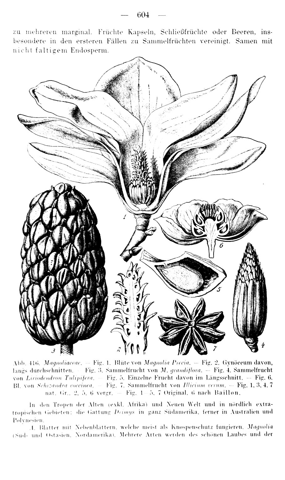 Allgemein: Korkig-holzige Sammelfrüchte von rötlich-brauner Farbe, meist aus 8 bootförmigen Balgfrüchten bestehend; ätherisches Öl nur im Pericarp. Die Schnittdroge besteht aus den auf der Außenseite graubraunen, stark gerunzelten, auf der Innenseite rotbraunen, glatten Fruchtwandteilen von harter Konsistenz und den ganzen, stark glänzenden kastanienbraunen Samen bzw. deren Bruchstücken.