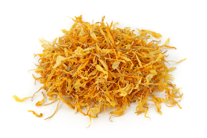 Allgemein: Orangefarbene Blütenkörbchen mit oder ohne grünem Hüllkelch; klebrige Konsistenz, hervorstechend aromatischer Geruch; 2 Qualitäten: Calendulae flos cum calyce (ganze Blutenköpfe); C. flos in calyce (nur Zungenblüten)