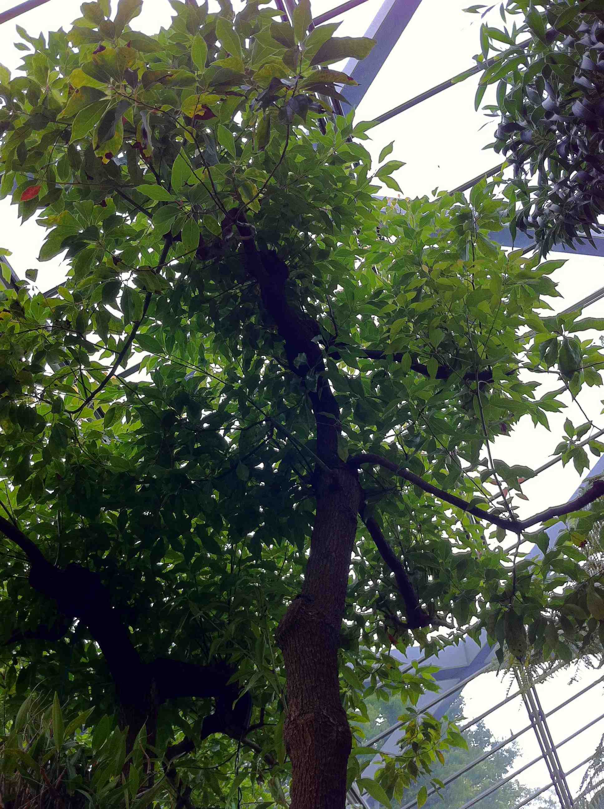 • Immergrüner, bis zu 50 m hoher Baum mit graubrauner, rissiger Rinde