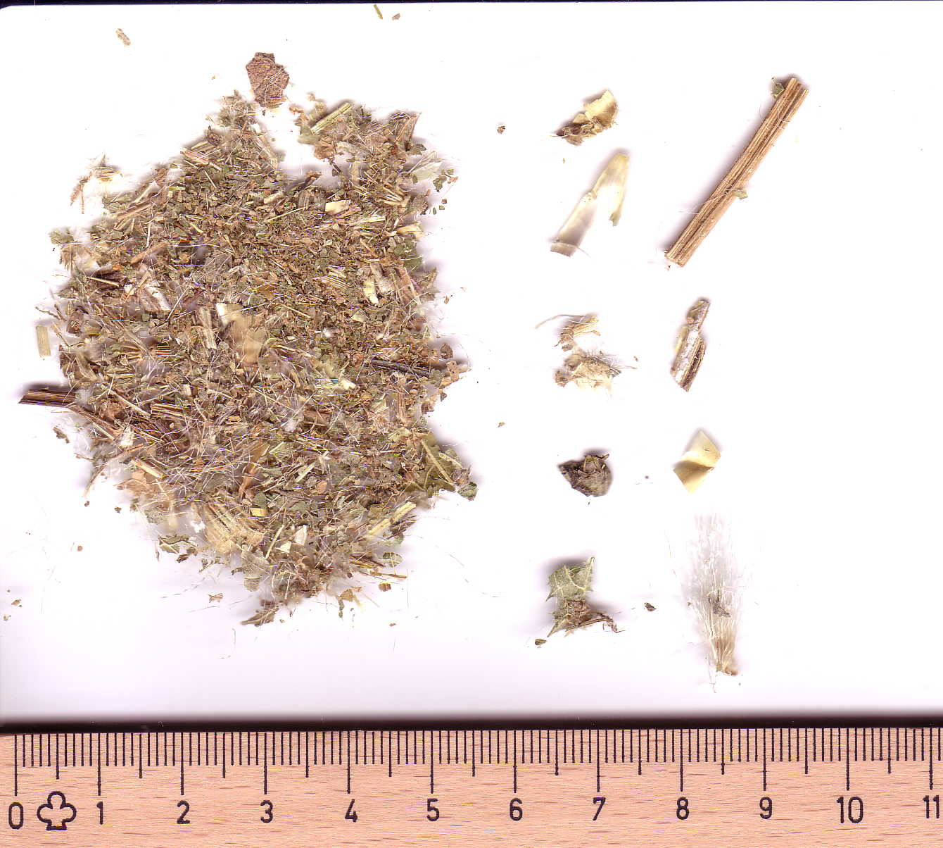- 0,25-0,4% Bitterstoffe: Cnicin (ungesättigtes Sesquiterpendihydroxylacton), Artemisiifolin (Derivat des Cnicin)
