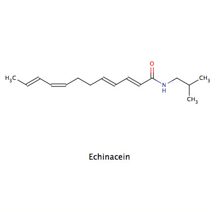 - Kaffeesäurederivate (Echinacosid, Cichoriensäure und Cynarin (dieses ist in anderen Echinacea-Arten nicht enthalten))