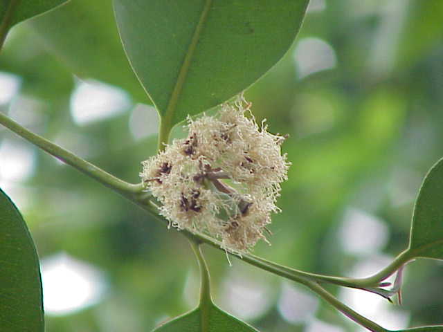 • Runde cremefarbene Blüten; holzige 1-3 cm große Samen