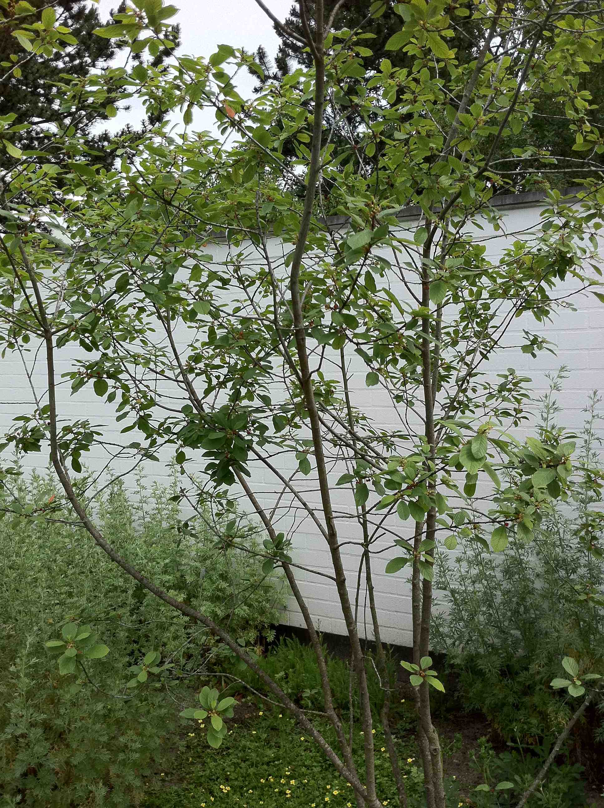 - 3-5 m hoher Strauch mit brüchigen Zweigen