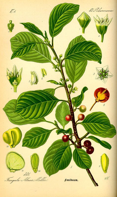 - >6% Frangulin A + B und Glucofrangulin A + B (Aglykon: Frangulaemodin)