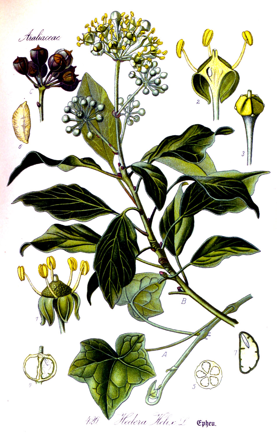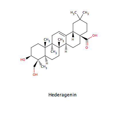 • 5% Saponingemisch: bisdesmosidisches Triterpenacylglykosid Hederacosid C und Monodesmosid α-Hederin (beide leiten sich vom Aglykon Hederagenin ab)
