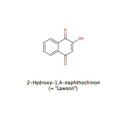 Naphthochinoide: Lawson ("Henna-Farbstoff") bzw. dessen Vorstufe 1,2,4-Trihydroxynaphtalin-4-β-O-glucosid