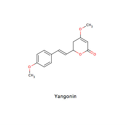 • 3-5% Styrylpyrone: Kavalactone bzw. Kavapyrone, z. B. Kavain, Yangonin und Methysticin