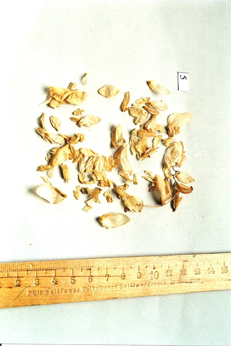 Allgemein: Hopfenzapfen → Blütenstände der weiblichen Pflanze und die ätherischölreichen Drüsenschuppen; Hopfendrüsen sind die von Hopfenzapfen durch Absieben gewonnenen Drüsenhaare (orange-gelbes, klebriges Pulver)