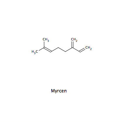 → 50-80% in Drüsenschuppen - Ätherisches Öl aus Mono- und Sesquiterpenen: Myrcen, β-Caryophyllen, Humulen (Drüsenschuppen > Hopfenzapfen)