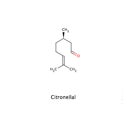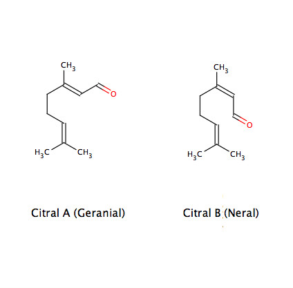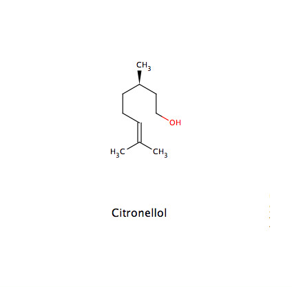 • Bis zu 0,8% ätherisches Öl → Hauptkomponenten: Citronellol, Citronellal, Citral (= Gemisch der Stereoisomere Geranial und Neral im Verhältnis 4:3), Linalool
