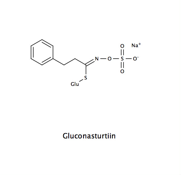 • In der frischen Droge (als Salat genutzt) dominieren Glucosinolate, wie z. B. Gluconasturtiin