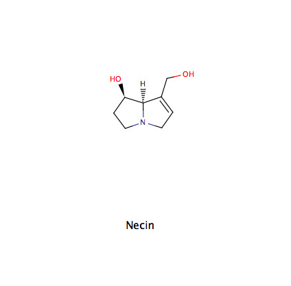 • Sich strukturell vom Necin ableitende, toxische Pyrrolizidinalkaloide (wenig)