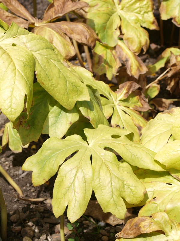 Pflanze: Podophyllum peltatum / Schildförmiges Fußblatt (syn.: Maiapfel, Entenfuß)