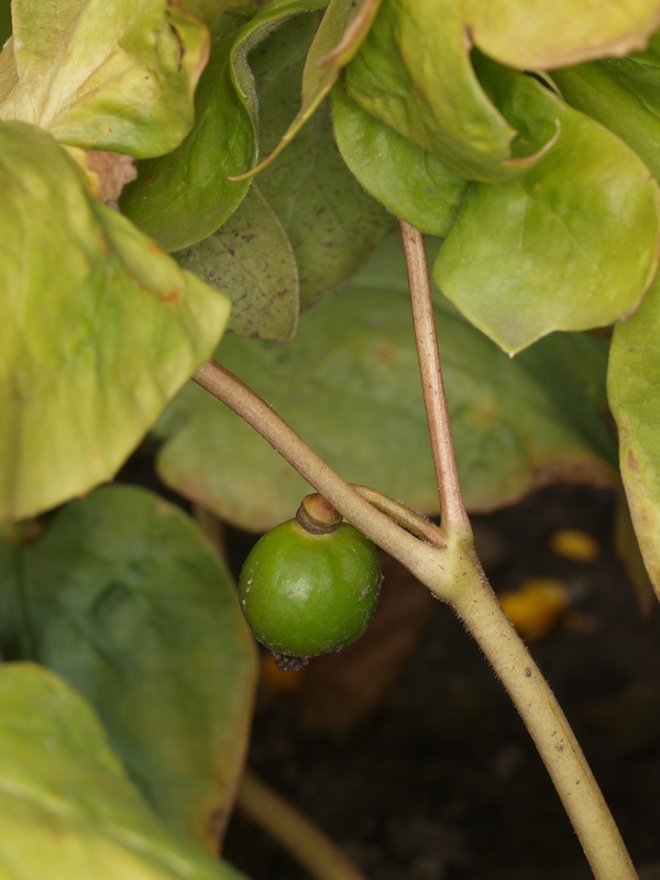 - Fleischige, eiförmige Frucht ist in unreifem Zustand giftig, reif jedoch essbar