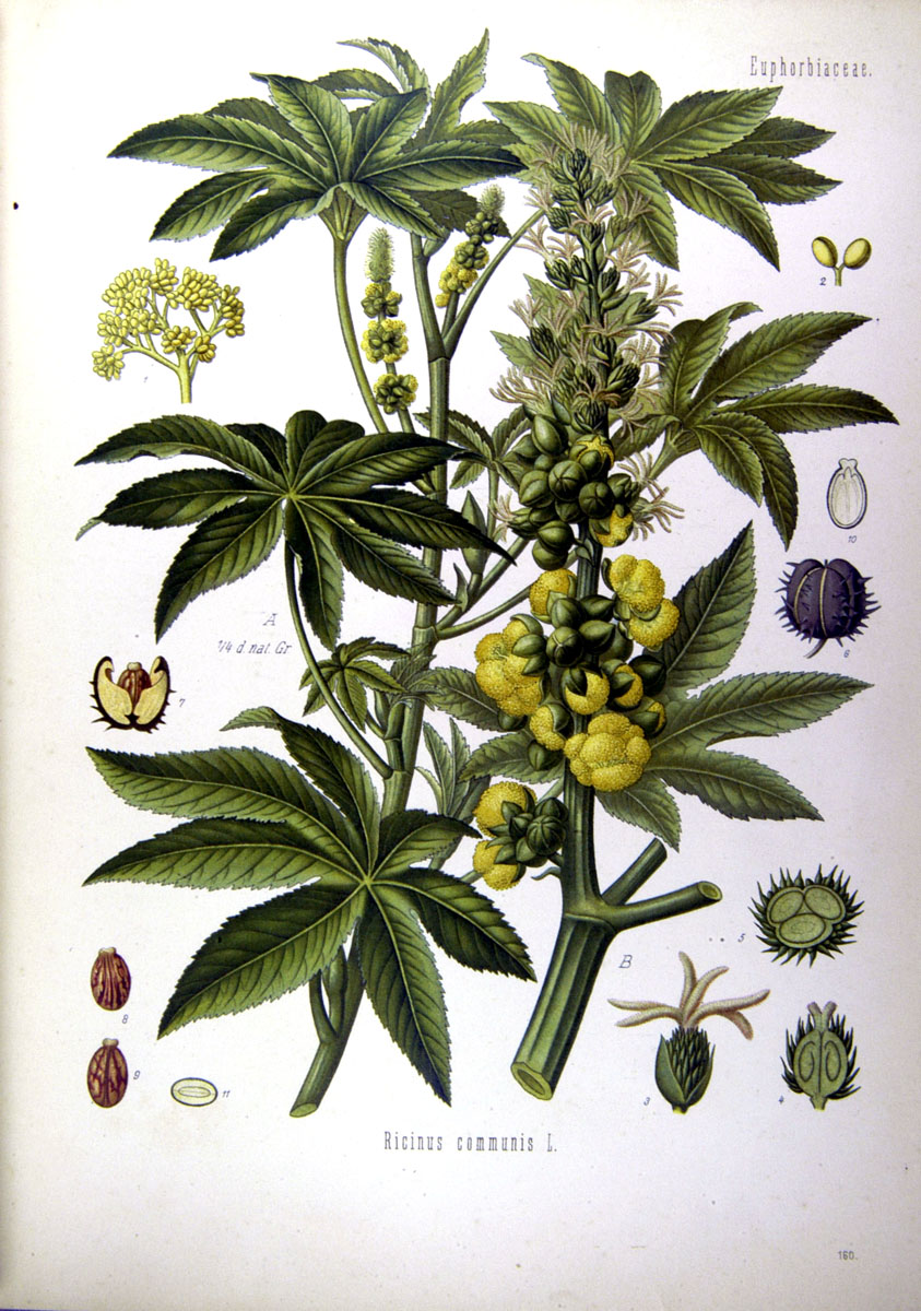 Proteine: hochtoxisches Ricin (Lektin aus 529 Aminosäuren); letale Dosis 0,25 mg (entspricht 2-4 Samenkörner) - Schwächer giftiges Ricinin (Pyridin-Alkaloid)