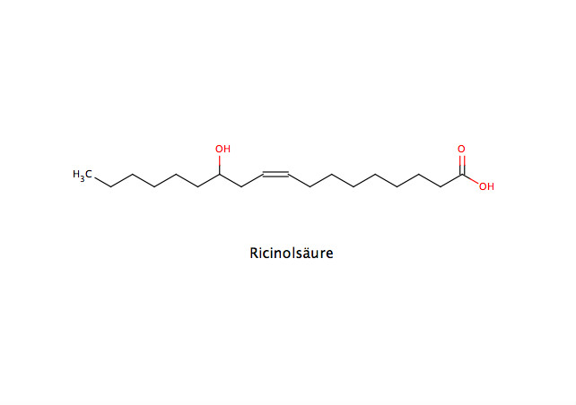 - 45-55% fettes Öl (in Samen) → zu 80% aus dem Glycerid der Ricinolsäure (12-Hydroxyölsäure)