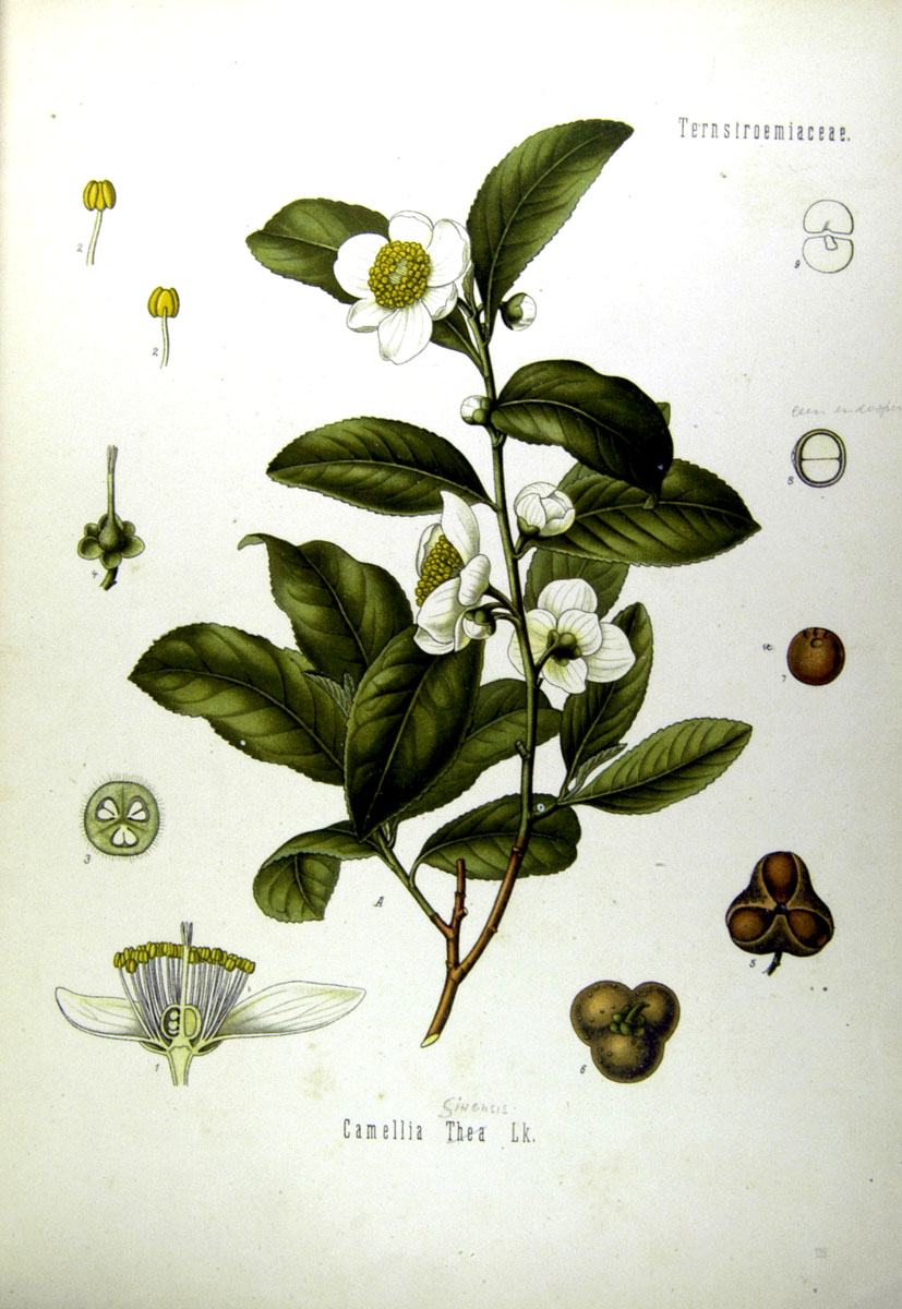 - 2-4% Coffein (frei und an Gerbstoffe gebunden); Gehalt in Blattknospen am höchsten!